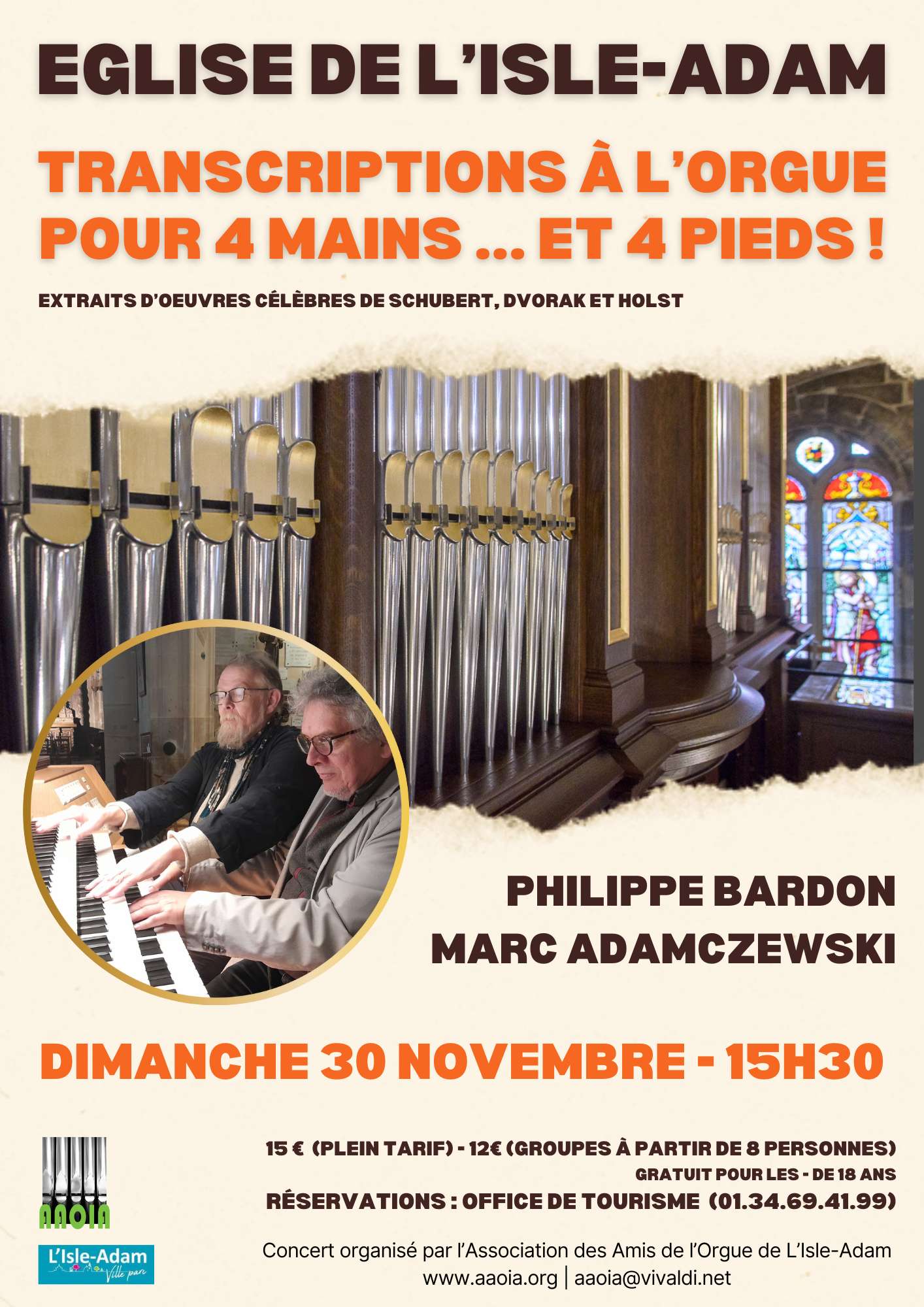 Concert exceptionnel à l’Église de L’Isle-Adam Transcriptions à l’orgue pour 4 mains… et 4 pieds !Dimanche 30 novembre à 15h30