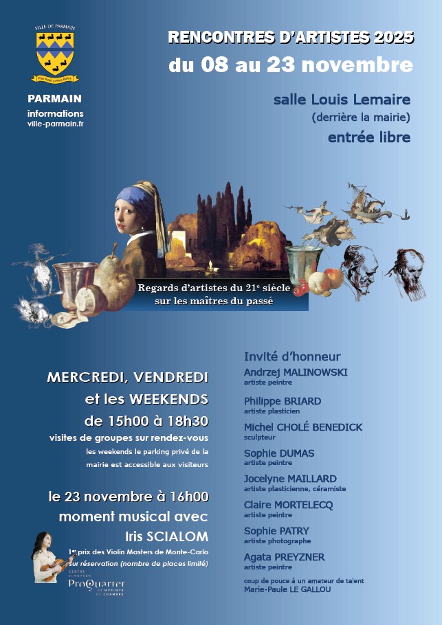 Le nombre de places étant limité à 50, nous vous conseillons de réserver auprès de Sylviane Saumier : ssaumier@ville-parmain.fr