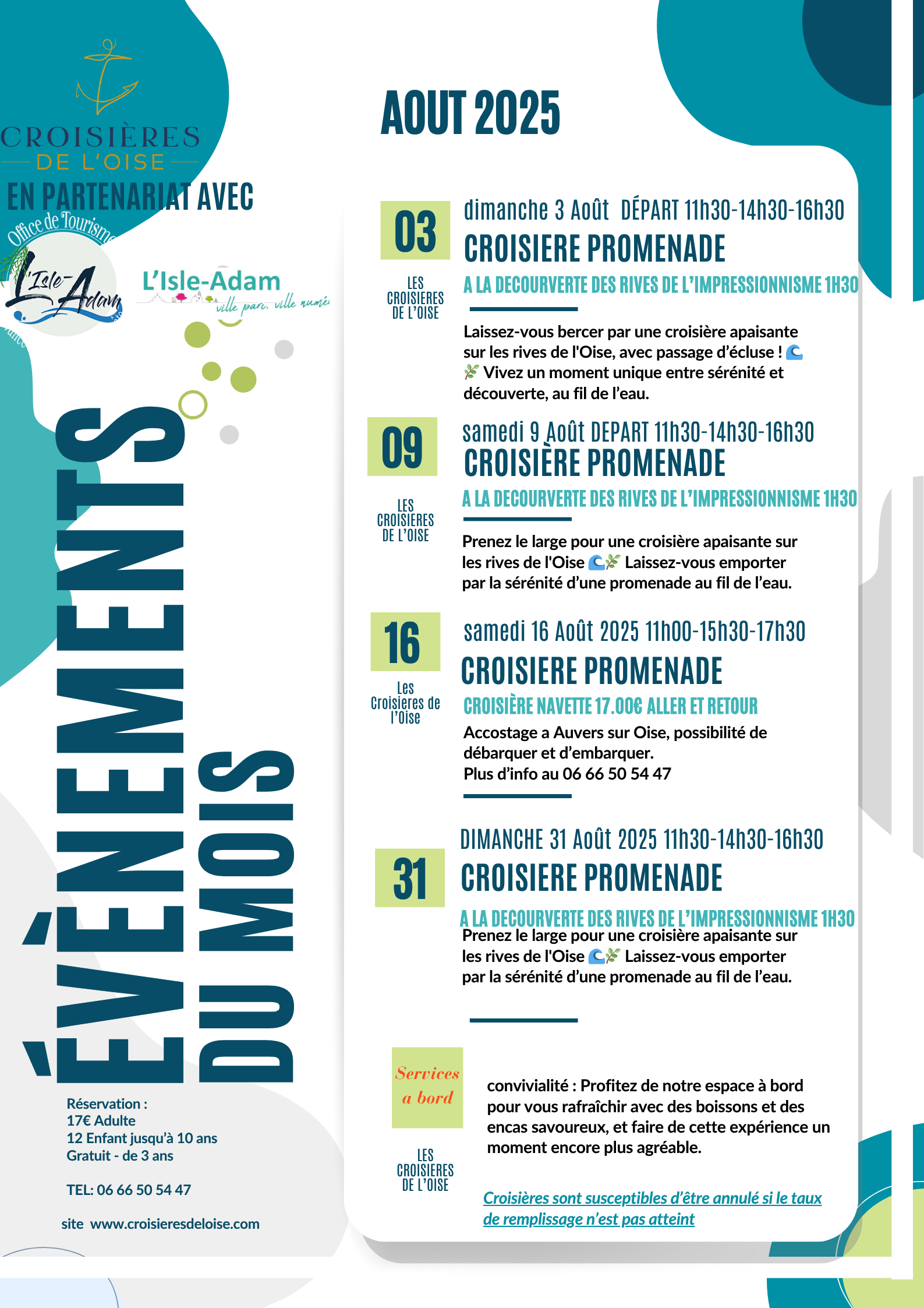🚢 Les Croisières de l’Oise sont de retour en août à L’Isle-Adam ! 🌿🎨 Embarquez pour une croisière promenade inoubliable au fil de